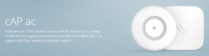 Aunque la radio admite el modo repetidor, los dos puertos Ethernet permiten ampliar la red con cables, incluso si se requiere alimentación PoE, ya que el cAP ac admite entrada PoE 802.3af/at en el primer puerto y salida PoE pasiva en el segundo. El dispositivo también admite aceleración de hardware IPsec.