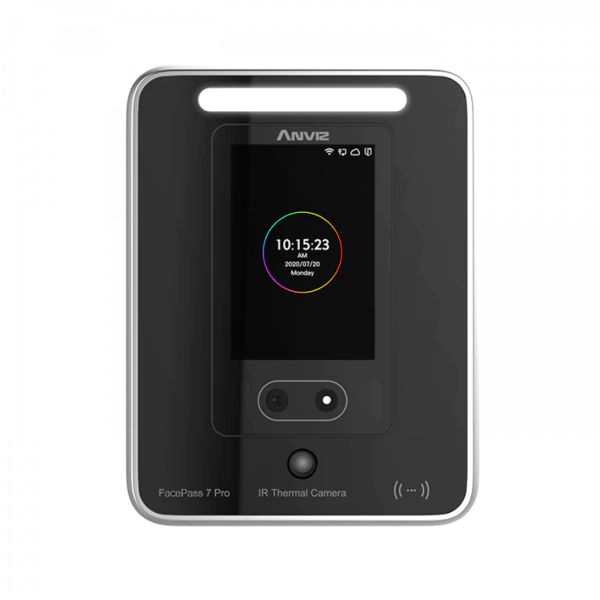 La ultima generacion FacePass 7 Pro es un terminal de control de acceso y asistencia de reconocimiento facial con detección de rostros en vivo basada en IR para una autenticación altamente segura que admite tarjetas RFID, detección de máscaras y detección de temperatura. FacePass 7 Pro es fácil de instalar, utilizar con funciones como una interfaz intuitiva en la pantalla táctil TFT de 3.5", gestión rápida mediante el registro de imágenes faciales, el servidor web integrado, compatible con Anviz CrossChex Standard software de escritorio y Anviz software basado en la nube CrossChex Cloud.