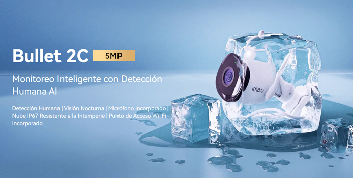 La Bullet 2C 5MP ofrece monitoreo en vivo de 5MP con opción de lente de 2.8 mm/3.6 mm. Es compatible con la última compresión H.265, lo que permite ahorrar hasta un 50% de ancho de banda y almacenamiento. La detección humana le permite monitorear lo que importa sin recibir falsas alarmas. Con certificación IP67, la cámara puede usarse en exteriores bajo diferentes condiciones climáticas.