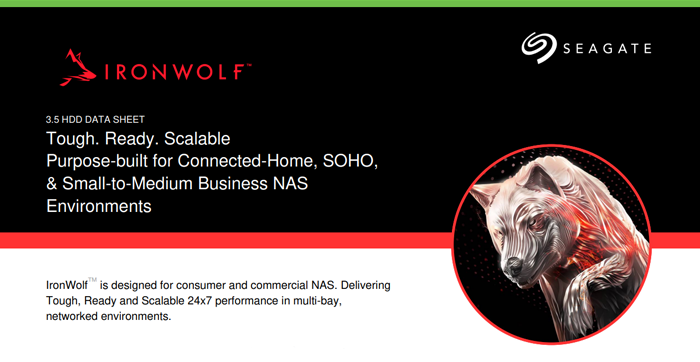 Los discos duros de almacenamiento conectado a red (NAS) IronWolf® de Seagate están diseñados para ofrecer fiabilidad, rendimiento y escalabilidad ininterrumpidos en sistemas NAS de múltiples bahías. Con capacidades de hasta 16 TB, incorporan la tecnología AgileArray™ para optimizar el rendimiento RAID, reducir la vibración y optimizar la eficiencia energética. Fabricados con tecnología CMR y sensores RV, los discos NAS IronWolf ofrecen velocidades constantes y durabilidad bajo cargas de trabajo intensas. IronWolf Health Management proporciona monitorización proactiva, mientras que un plan trienal de Servicios de Recuperación de Datos Rescue ofrece tranquilidad en la seguridad de los datos.