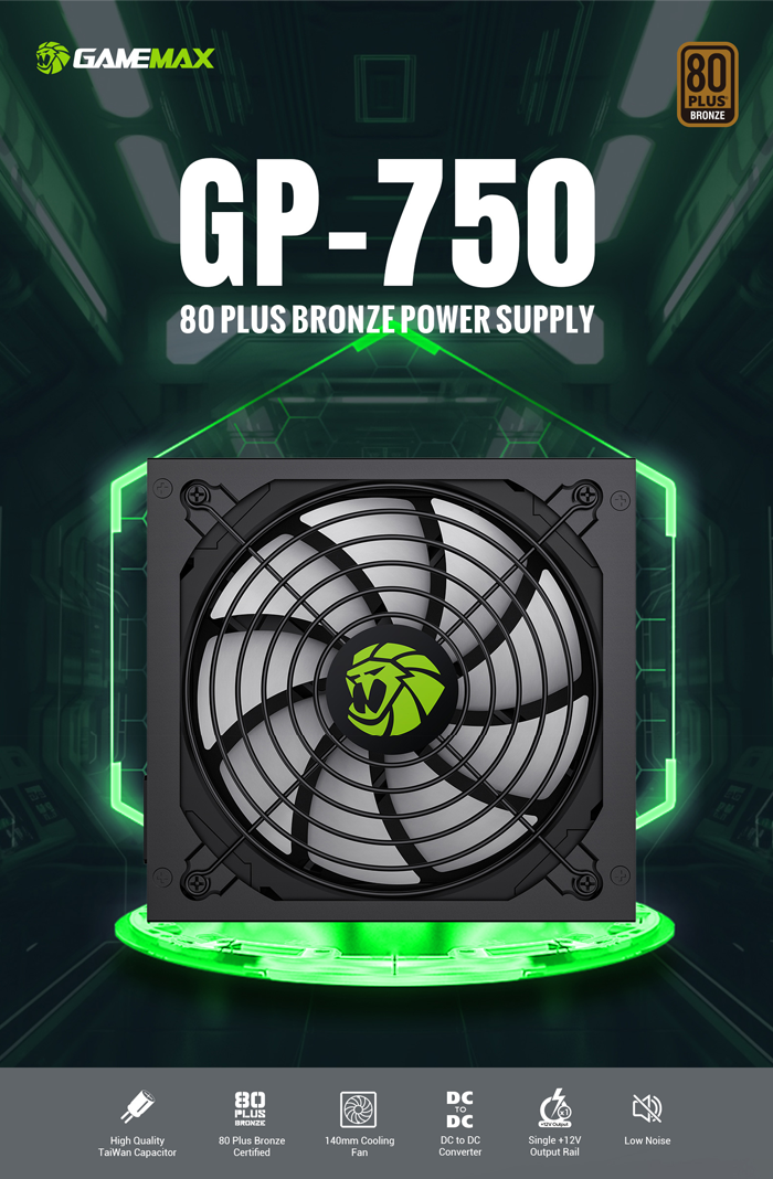 GameMax 80 plus Bronze Certified GP-750 None-Modular PSU features a cut-edge DC-to-DC design, Provides high-performance business and gaming build, and experiences gaming Bliss with the GP-750 power supply!