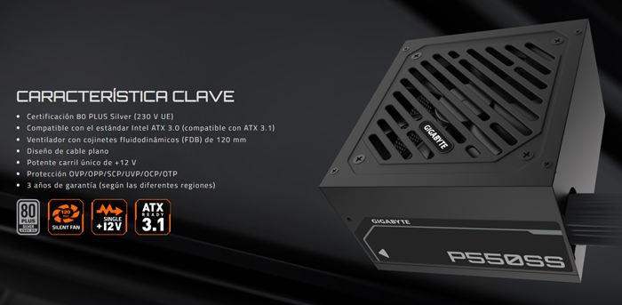 Tipo Factor de forma Intel ATX 12V v3.0 (compatible con ATX 3.1)