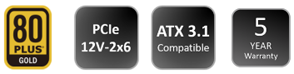 Conozca 80 PLUS® Gold con entrada de 115 V CA. |