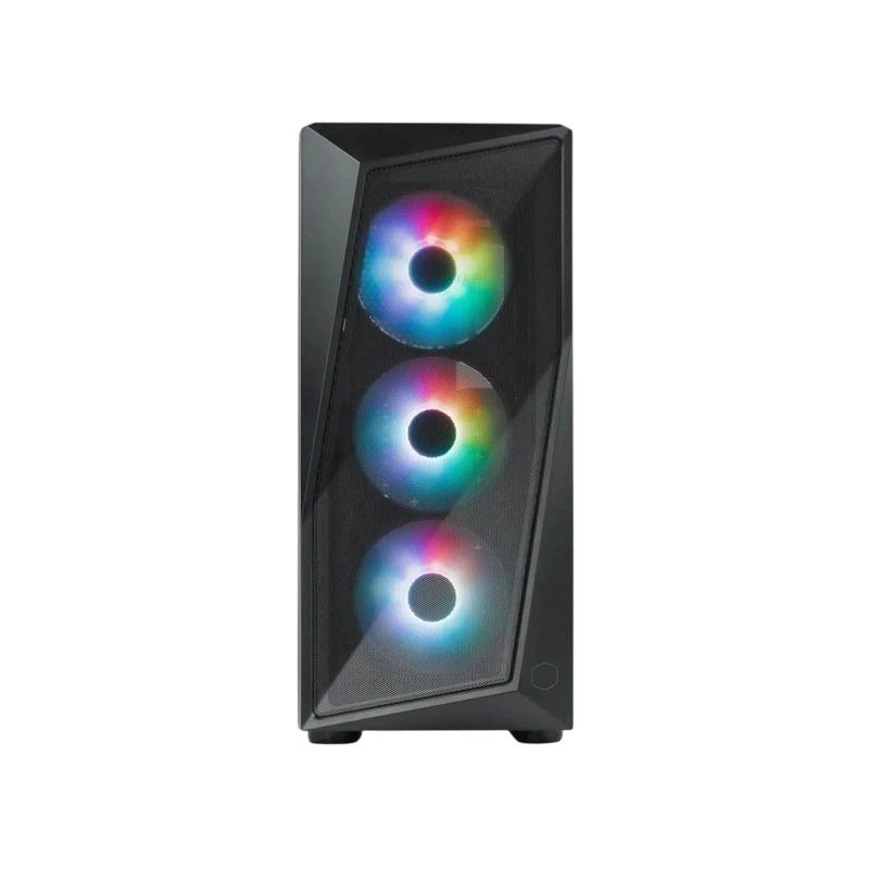 El diseño asimétrico del panel frontal del CMP 520 enmarca los tres ventiladores ARGB de 120 mm preinstalados como piezas centrales únicas en la construcción.