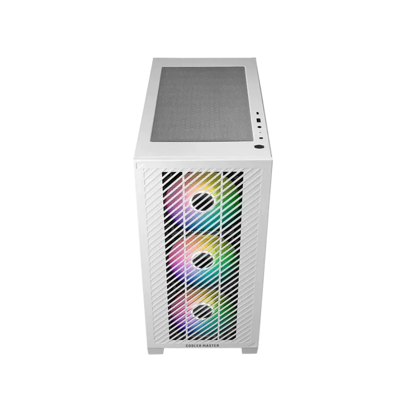El Elite 301 cuenta con una amplia rejilla de entrada de aire y tres ventiladores ARGB de 120 mm para garantizar un funcionamiento fluido y eficiente del sistema. El revestimiento completamente negro y la cubierta de la fuente de alimentación incluida permiten configuraciones limpias, visualmente atractivas y funcionales.