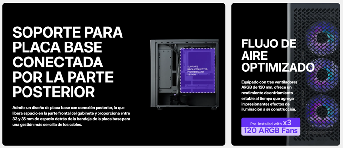 Ventiladores preinstalados - Delanteros 3 ventiladores ARGB de 120 mm