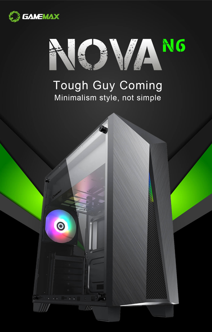 GameMax nuevo NOVA N6 ATX diseño de chasis de juego único, tanto de calidad como de rendimiento, con la última cubierta de PSU superior, para acelerar la instalación mediante el montaje de su sistema mediante placa base de marco abierto