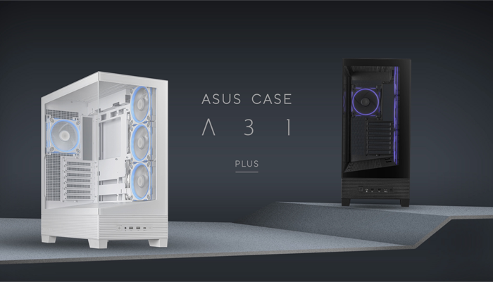 La caja ASUS A31 PLUS ATX ofrece soporte para placas base con conectores ocultos, radiadores de 360 mm y tarjetas gráficas de 380 mm, con opciones de color negro o blanco, cuatro ventiladores ARGB preinstalados y una gestión de cables limpia.