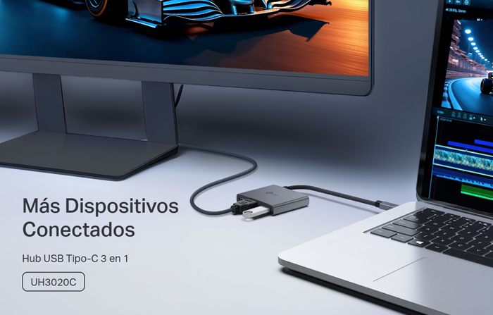 Hub 3 en 1 USC-C. UH3020C convierte un único puerto USB-C en 6 puertos con un HDMI 4K@60Hz , 100W Power Delivery y un puerto USB-A.