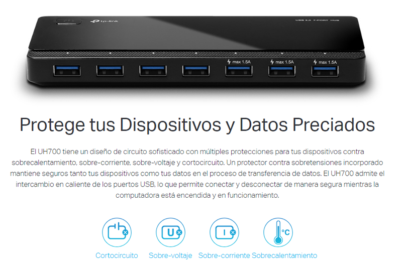 | Contenido de Paquete | Hub de 7 Puertos USB 3.0 UH700 Adaptador de corriente de 12V & 2.5A Cable USB 3.0 de un metro Guía de instalación rápida |