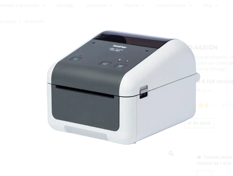 Tecnología térmica directa, resolución 203 ppp, conexión USB, red cableada y Serie