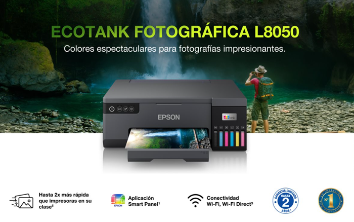 La EcoTank L8050 es una impresora fotográfica accesible y confiable. ideal para productores gráficos, entusiastas y vendedores de fotografías que buscan colores vibrantes y de alta calidad con la comodidad de la conectividad Wi-Fi, para imprimir desde dispositivos móviles con la aplicación Epson SmartPanel.