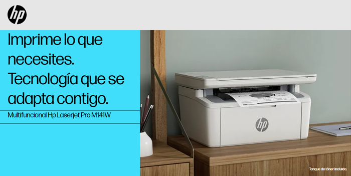 HP LaserJet MFP M141w; Cartucho de tóner HP LaserJet 150A, negro; Cable de alimentación; Póster de instalación; Guía de referencia; Guía de garantía y volante