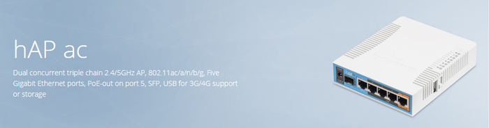 El hAP ac es nuestro dispositivo inalámbrico más universal para el hogar o la oficina. Es un dispositivo de doble banda con puertos Gigabit que permite aprovechar al máximo la velocidad de la tecnología 802.11ac, a la vez que mantiene la compatibilidad con dispositivos antiguos en los modos 802.11 b/g/n de 2 GHz y a/n de 5 GHz.