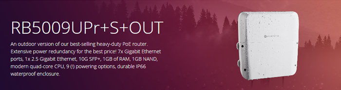 Añadir una carcasa impermeable con clasificación IP66 a la serie RB5009 nos permitió cumplir con todos los requisitos. El nuevo RB5009UPr+S+OUT es una solución compacta y económica que revolucionará la configuración de sus torres de red. ¡Obtenga uno de los dispositivos de red para exteriores más potentes al mejor precio del mercado!