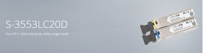 Estas unidades han sido probadas y son compatibles con RB260GS, RB2011LS, RB2011LS-IN, RB2011UAS-IN, RB2011UAS-RM, RB2011UAS-2HnD y RB2011UAS-2HnD-IN CCR1036-12G-4S. Las unidades también son compatibles con dispositivos SFP que no sean MikroTik.
