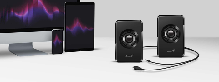 Funciona con una entrada de 0,14 in (3,5 mm) que incluye un reproductor de música de televisión, computadora, teléfono inteligente y tableta.