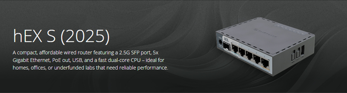 A compact, affordable wired router featuring a 2.5G SFP port, 5x Gigabit Ethernet, PoE out, USB, and a fast dual-core CPU – ideal for homes, offices, or underfunded labs that need reliable performance.