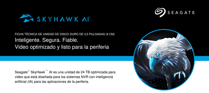 La unidad Skyhawk AI está optimizada para ser usada en el análisis de video y en las aplicaciones de procesamiento de imágenes. Fue diseñada con características avanzadas y es adecuada para usarse con grabadores de video en red (NVR, por sus siglas en inglés) con inteligencia artificial (IA), servidores y aplicaciones que cuentan con capacidad para análisis por IA y aprendizaje profundo.