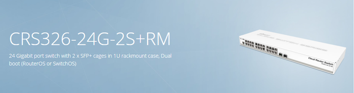 Conmutador de 24 puertos Gigabit con 2 ranuras SFP+ en carcasa de montaje en rack 1U, arranque dual (RouterOS o SwitchOS)
