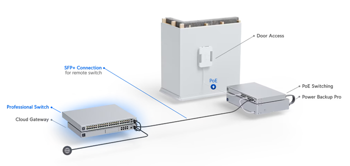 Un conmutador de capa 3 de 24 puertos que admite conexiones SFP+ de 10 G con refrigeración sin ventilador.