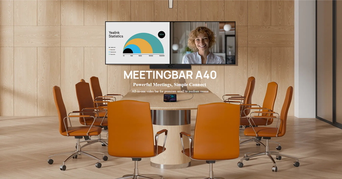Yealink MeetingBar A40 es una barra de colaboración de video todo en uno para salas pequeñas y medianas de nivel premium. Combina las imágenes de dos lentes de 48 MP, ofreciendo una imagen de mayor resolución y una calidad visual más clara. También cuenta con 2 parlantes estéreo integrados, una matriz de micrófonos MEMS de 8 elementos y admite hasta 2 micrófonos de expansión adicionales*. La tecnología inteligente de reducción de ruido proporciona una excelente experiencia de audio.